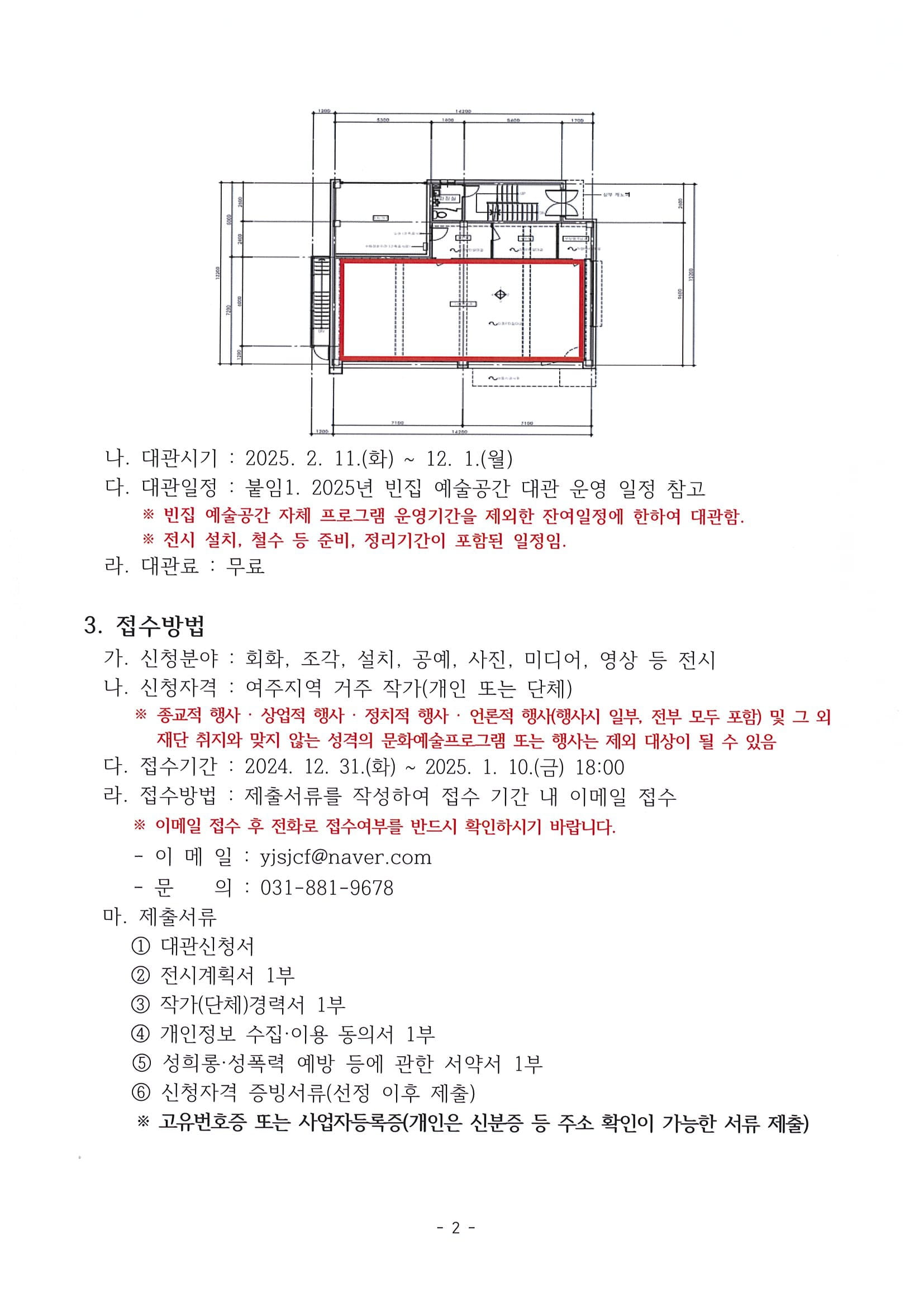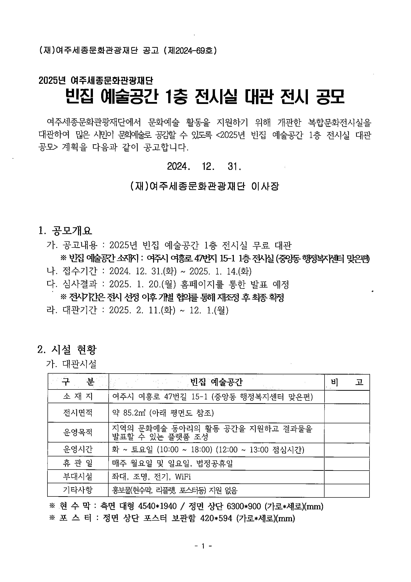 첨부파일 : (제2024-69호) 2025년 빈집 예술공간 1층 전시실 대관 전시 공모.pdf