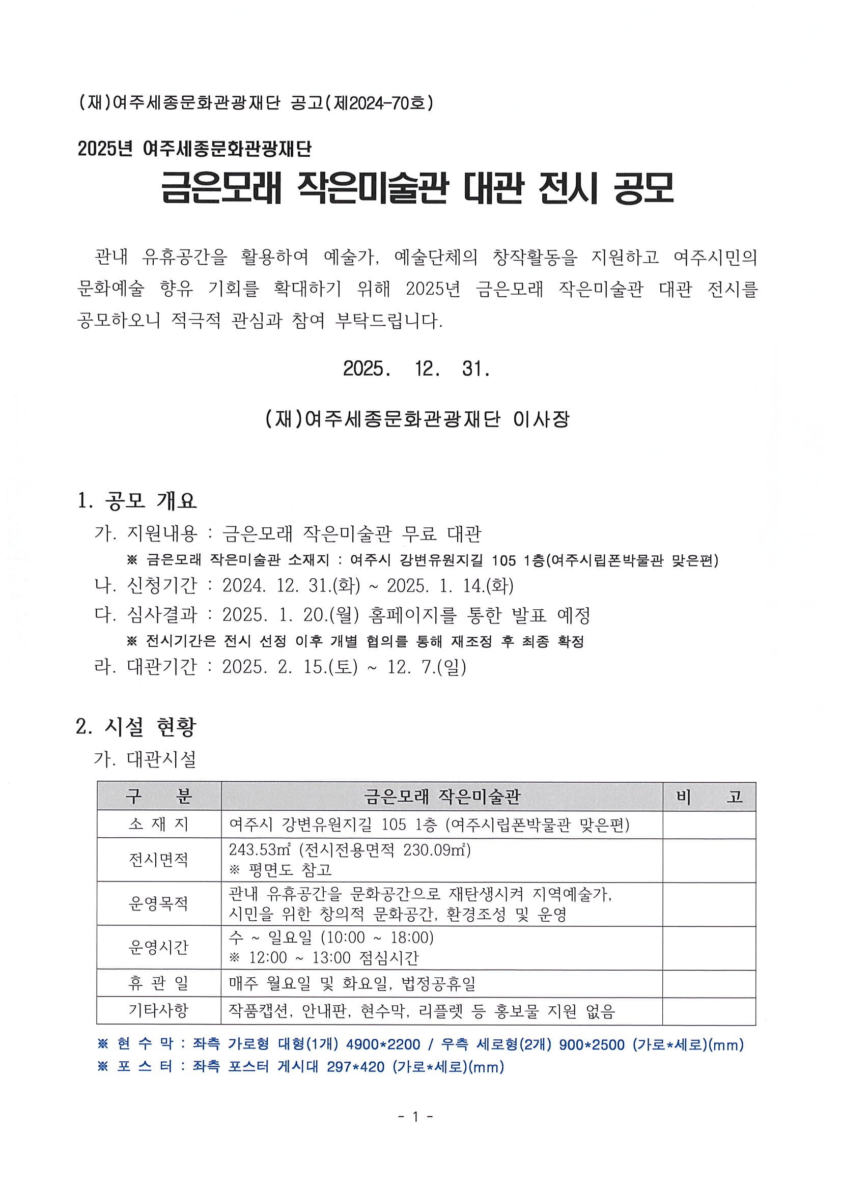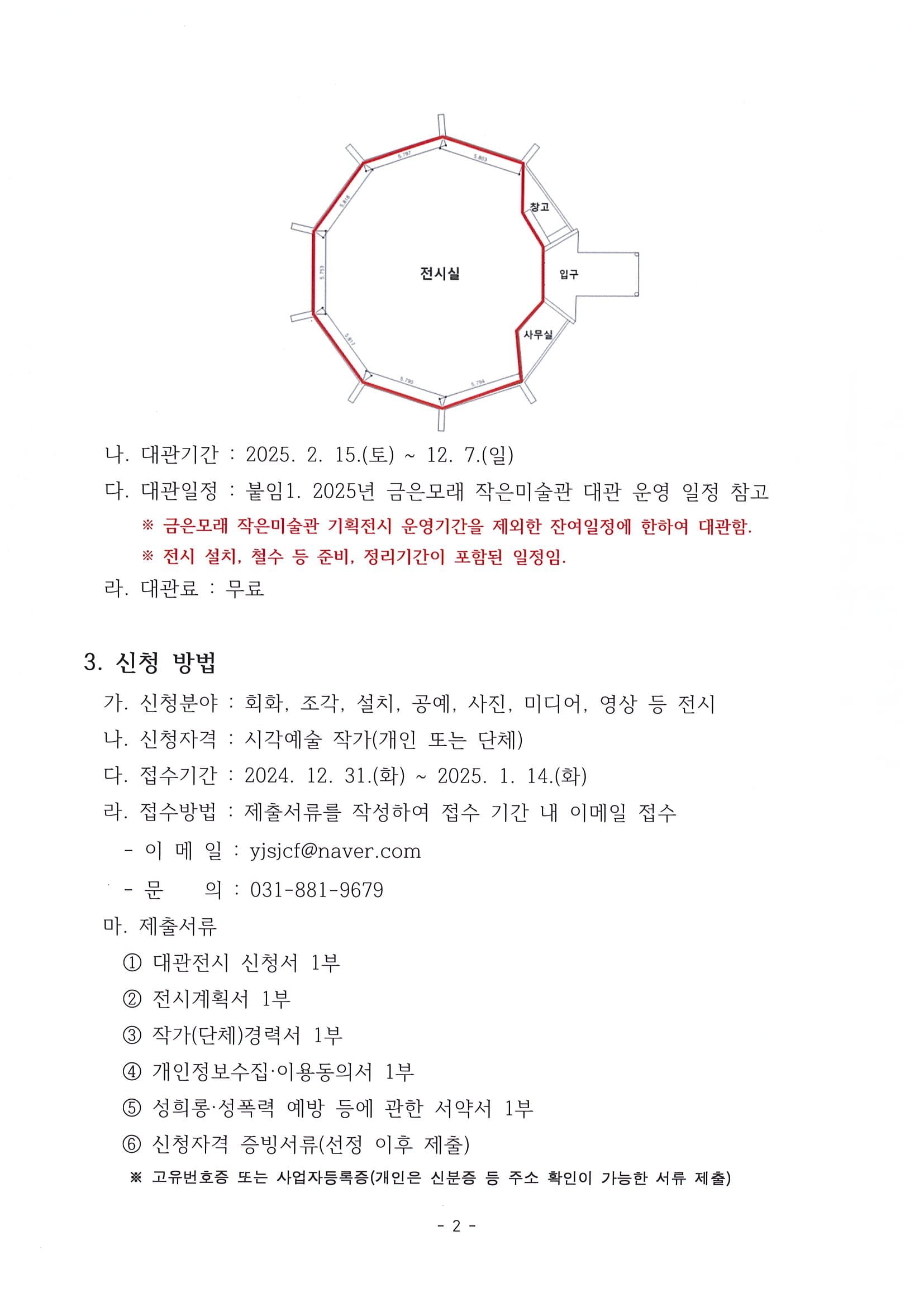첨부파일 : (제2024-70호) 2025년 금은모래 작은미술관 대관 전시 공모.pdf