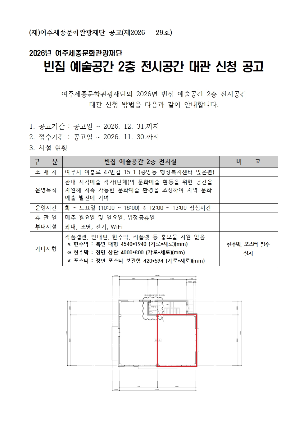 2026년 여주세종문화관광재단 빈집 예술공간 2층 전시공간 대관 신청 공고