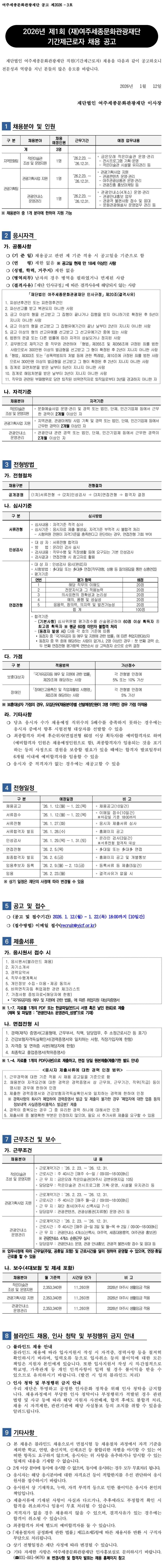 2026년 제1회 (재)여주세종문화관광재단 기간제근로자 채용 공고